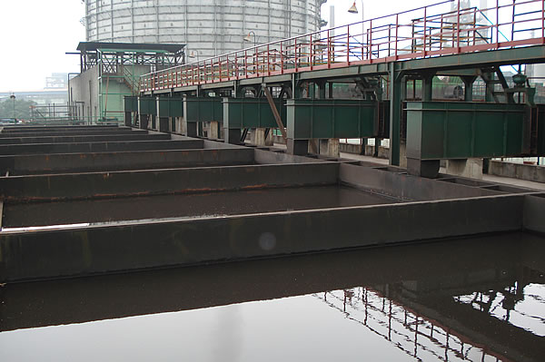 一、概述 高效组合式斜板废水沉淀器是我公司采用分散颗粒的浅层沉淀理论,吸取了国外多层、多格、斜板沉淀先进技术,结合各种不同污水成分及使用、排放要求开发研制的一种新型水处理设备,适用于冶金、市政工程、机械、化工、电力、建材等行业的废水、污水处理工程,具有处理效率高、占地面积小、能耗低、投资省、运行管理方便、安全、可靠等优点。 组合式斜板沉淀器有逆流和横流两种类型,用户可以根据不同情况加以选用。对于炼钢厂转炉烟气净化污水处理而言,由于污水悬浮物含量高,温度变化范围大,为消除因温度变化而产生的异重流影响,选用横流组合式斜板沉淀器较为理想。若采用由全自动干粉投加絮凝剂装置(电磁式凝聚器)-斜板沉淀器-螺旋输泥机-压缩空气提升-脱水机所组成的新工艺来处理上述污水,则经处理后的污水悬浮物含量可<30-100ml/l,污泥含水率<25~30%,是较为理想的水处理工艺和水处理设备。